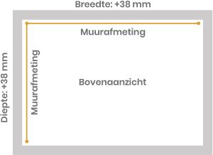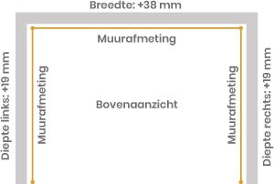 Een U-opstelling bestaat uit drie Simple 19 frames, bevestigd aan twee verticale Carre 19 profielen. Let op: houd er rekening mee dat je de framemaat van de twee buitenste frames elk 19 mm breder bestelt dan de afmeting van de muur en het middelste frame 38 mm breder dan de afstand tussen de hoeken.