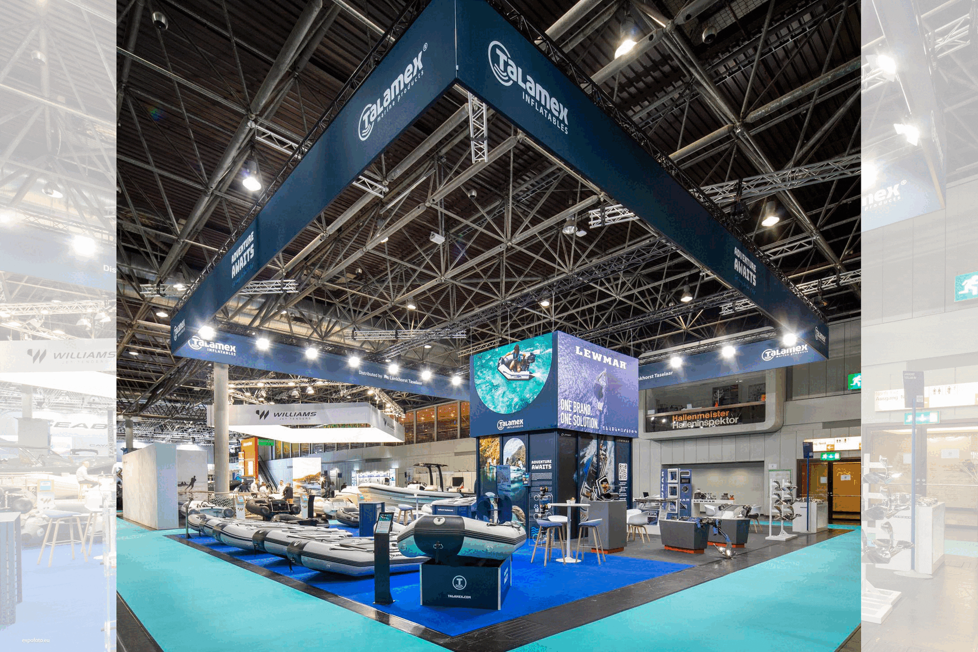 Tijdens BOOT Düsseldorf 2026 waren onze aluminium textielframes onderdeel van twee opvallende beursstands, gerealiseerd door onze klant Schokker Producties voor Lankhorst Taselaar Heerenveen. Voor verschillende onderdelen van deze stands zijn textielframes gebruikt.