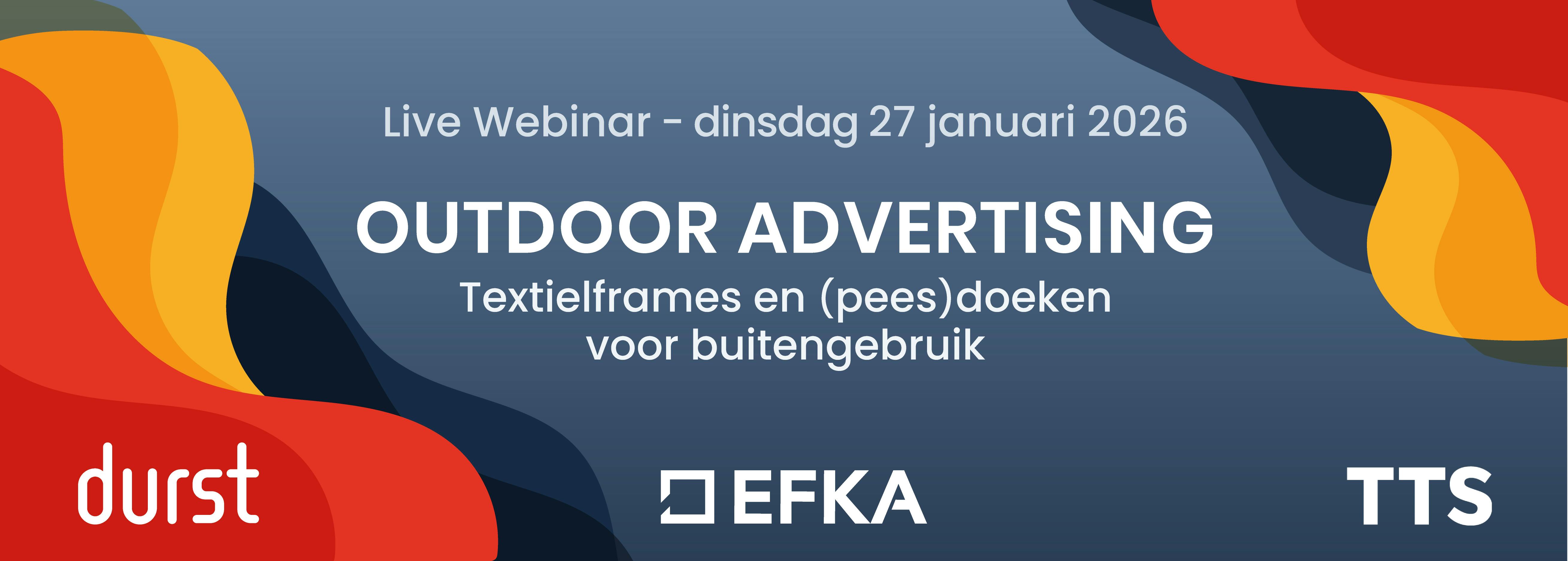Tijdens dit webinar ontdek je in slechts 45 minuten hoe je met de juiste combinatie van textielframes, doeken en printtechnieken ook buiten een krachtige en duurzame impact maakt. Onze experts van EFKA, Durst en Texo Trade Services (TTS) geven je praktische inzichten en tips waarmee je direct aan de slag kunt.